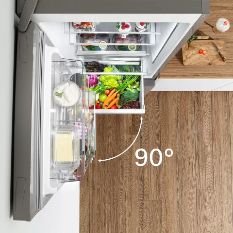 Τοποθετήστε το ψυγείο σας όπου εσείς θέλετε, χωρίς περιορισμούς. Άλλα κοινά μοντέλα ψυγείων στην αγορά χρειάζονται περίπου 10 εκατοστά απόσταση μέχρι τον τοίχο για να μπορέσετε να ανοίξετε τις πόρτες και τα συρτάρια τους. Χάρη στην πρωτοποριακή τεχνολογία Perfect Fit, οι ελεύθεροι ψυγειοκαταψύκτες Bosch μπορούν να τοποθετηθούν ακριβώς δίπλα σε τοίχους και έπιπλα χωρίς ούτε χιλιοστό χώρου αναξιοποίητο. Χρειάζονται ακριβώς 70cm πλάτος μόνο, και ο ελεύθερος ψυγειοκαταψύκτης Bosch θα ταιριάξει γάντι στη θέση του.